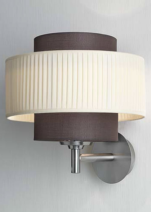 Lampada da parete composta da struttura in metallo e paralume in tessuto a pieghe pongč bianco con pendenti.