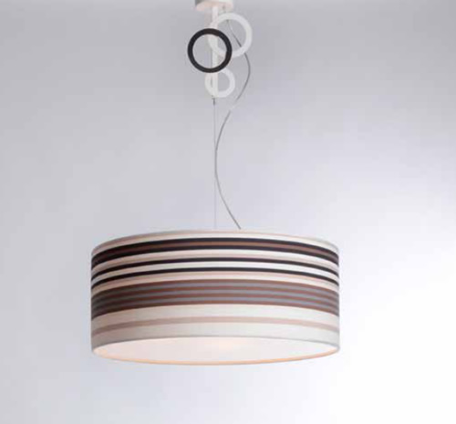 Sospensione in tessuto arricchita dal Cuoio e da particolari tipici dell’Equitazione. Il rivestimento del paralume è liscio nei colori Cipria o Marrone, mentre il cuoio può essere nel colore Testa di Moro oppure Cognac.