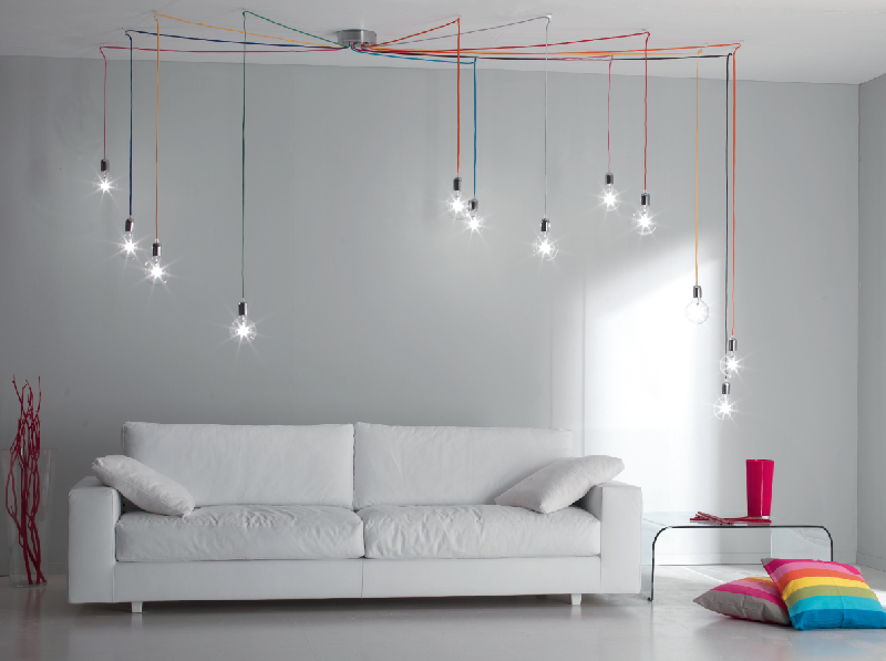 SOSPENSIONE COMPOSTA DA 9 CAVI PORTALAMPADE CON COLORI A SCELTA DAL CLIENTE